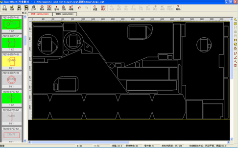 2、強(qiáng)大的零件圖形導(dǎo)入功能。可以批量導(dǎo)入DXF/DWG文件,對(duì)DXF/DWG文件的版本和繪圖方式?jīng)]有任何要求,軟件根據(jù)圖層分配自動(dòng)識(shí)別切割圖形和劃線圖形,自動(dòng)標(biāo)示原圖中的重復(fù)線和不封閉輪廓,提示圖形轉(zhuǎn)換信息。
